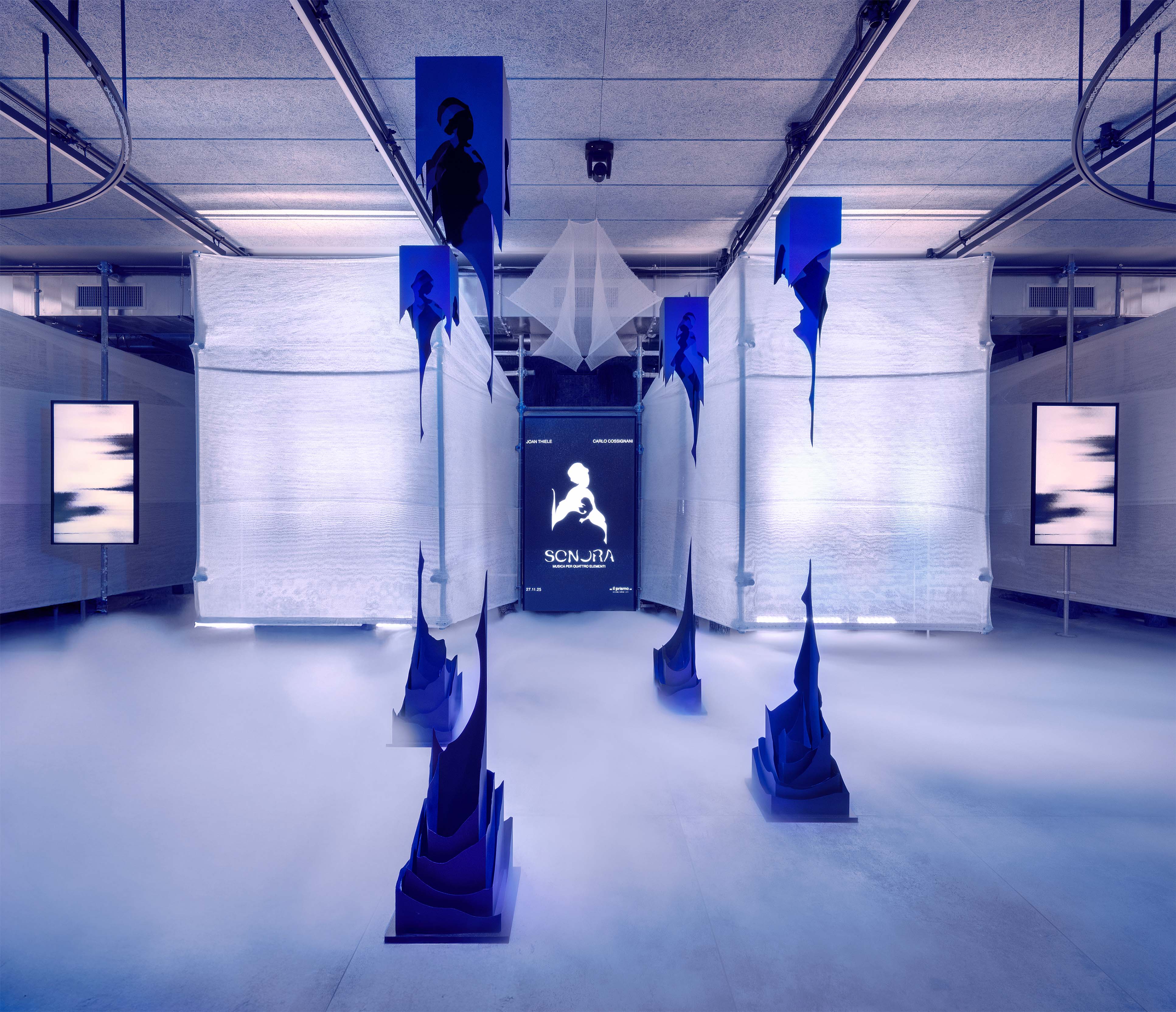 Architecture, art, and movement intertwined in the experiential performance Sonora, music for four elements, created by our resident artists Joan Thiele and Carlo Cossignani.